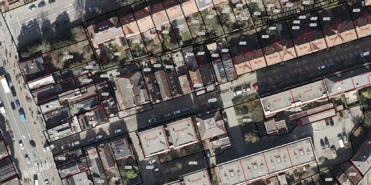 Helper Kerkstraat 18-1 is gelegen op kadastraal perceel HMN02M2647. Deze kadastrale aanduiding is uniek en wordt gebruikt door het Kadaster om eigendomsrechten en andere zakelijke rechten vast te leggen. Het perceel maakt onderdeel uit van de kadastrale gemeente Helpman.