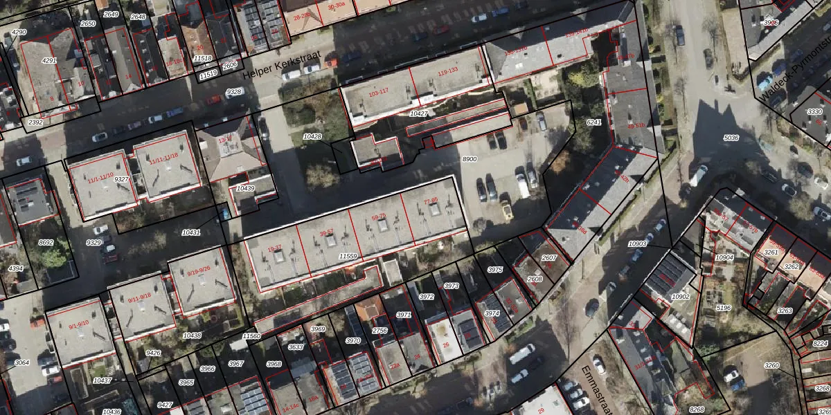 Helper Kerkstraat 79 is gelegen op kadastraal perceel HMN02M11559. Deze kadastrale aanduiding is uniek en wordt gebruikt door het Kadaster om eigendomsrechten en andere zakelijke rechten vast te leggen. Het perceel maakt onderdeel uit van de kadastrale gemeente Helpman.