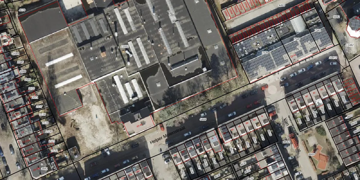 Het perceel waarop Helper Molenstraat 69 staat heeft een oppervlakte van 1,0 ha. Dit is een zeer groot perceel. De perceeloppervlakte wordt geregistreerd door het Kadaster. Gedetailleerde informatie over de maten van dit perceel kunt u vinden in het rapport Kadastrale kaart met maatvoering van Helper Molenstraat 69.