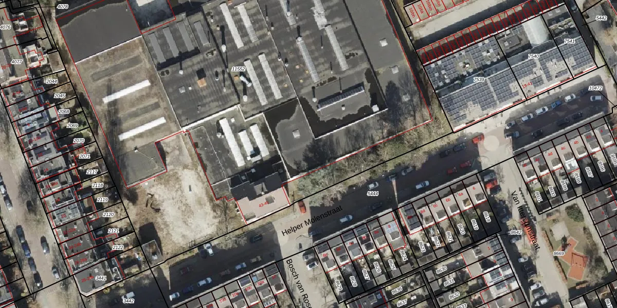 Het perceel waarop Helper Molenstraat 77 staat heeft een oppervlakte van 1,0 ha. Dit is een zeer groot perceel. De perceeloppervlakte wordt geregistreerd door het Kadaster. Gedetailleerde informatie over de maten van dit perceel kunt u vinden in het rapport Kadastrale kaart met maatvoering van Helper Molenstraat 77.