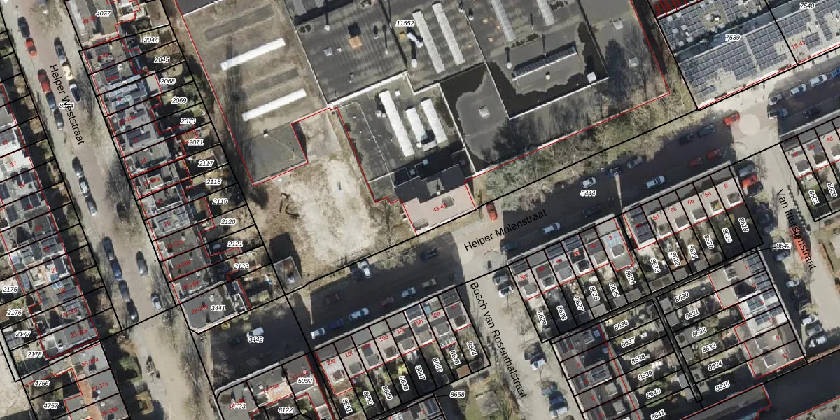 Het perceel waarop Helper Molenstraat 93 staat heeft een oppervlakte van 1,0 ha. Dit is een zeer groot perceel. De perceeloppervlakte wordt geregistreerd door het Kadaster. Gedetailleerde informatie over de maten van dit perceel kunt u vinden in het rapport Kadastrale kaart met maatvoering van Helper Molenstraat 93.