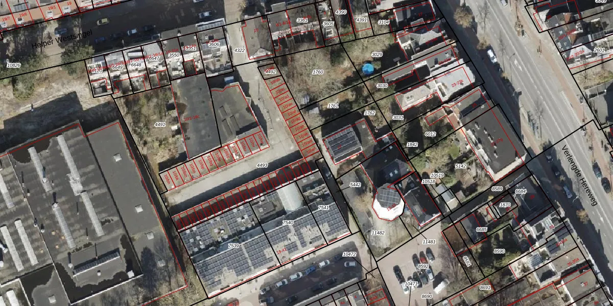 Het perceel waarop Helper Westsingel 10-an staat heeft een oppervlakte van 1567 m². Dit is een zeer groot perceel. De perceeloppervlakte wordt geregistreerd door het Kadaster. Gedetailleerde informatie over de maten van dit perceel kunt u vinden in het rapport Kadastrale kaart met maatvoering van Helper Westsingel 10-an.