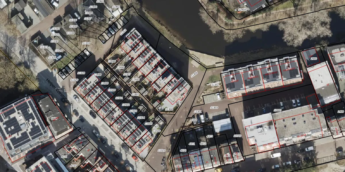 Helper Westsingel 53 is gelegen op kadastraal perceel HMN02M11367. Deze kadastrale aanduiding is uniek en wordt gebruikt door het Kadaster om eigendomsrechten en andere zakelijke rechten vast te leggen. Het perceel maakt onderdeel uit van de kadastrale gemeente Helpman.