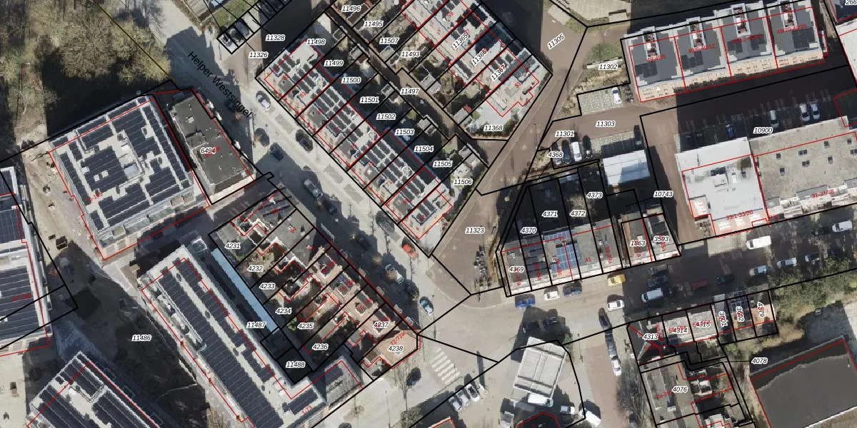 Gebruik de zoekbalk of klik op een perceel voor informatie over de adressen binnen dit perceel.