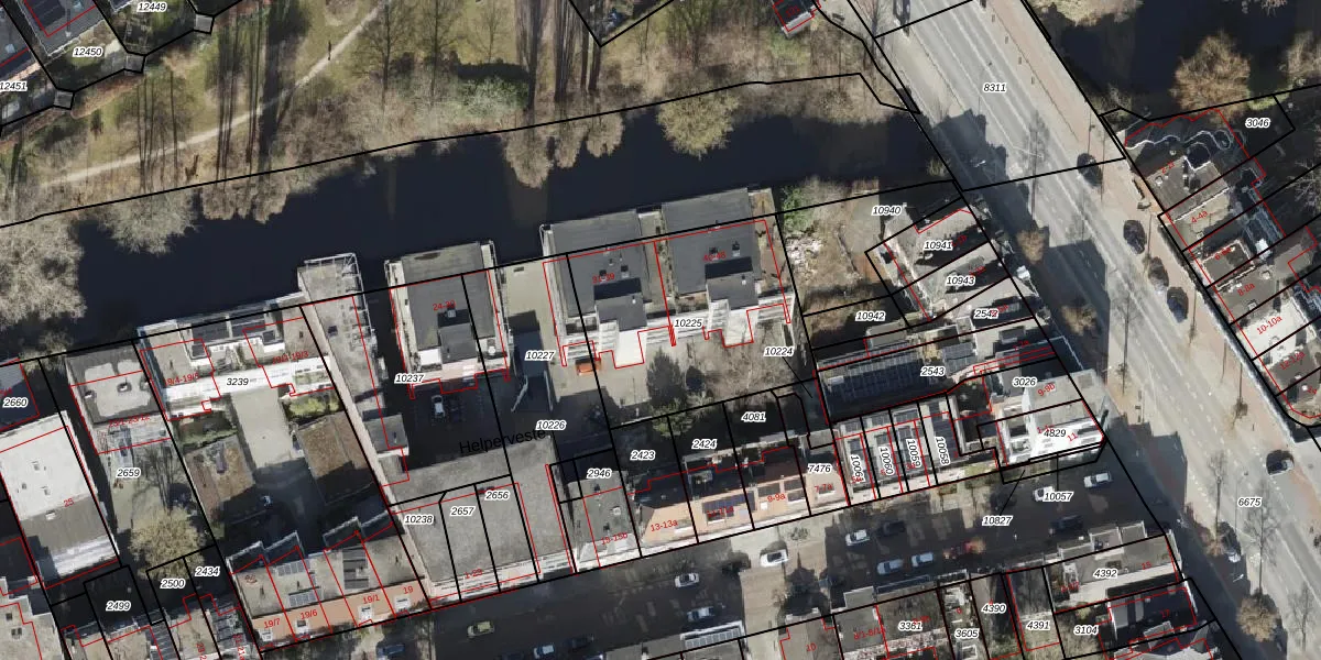 Het perceel waarop Helperveste 33 staat heeft een oppervlakte van 860 m². Dit is een groot perceel. De perceeloppervlakte wordt geregistreerd door het Kadaster. Gedetailleerde informatie over de maten van dit perceel kunt u vinden in het rapport Kadastrale kaart met maatvoering van Helperveste 33.