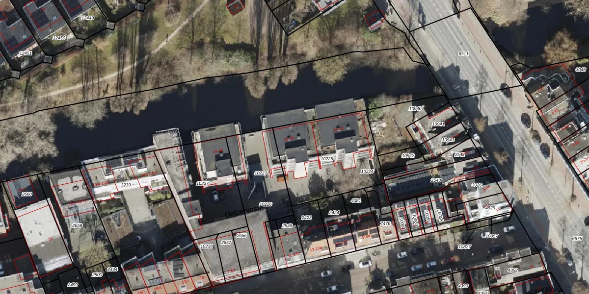 Het perceel waarop Helperveste 37 staat heeft een oppervlakte van 860 m². Dit is een groot perceel. De perceeloppervlakte wordt geregistreerd door het Kadaster. Gedetailleerde informatie over de maten van dit perceel kunt u vinden in het rapport Kadastrale kaart met maatvoering van Helperveste 37.