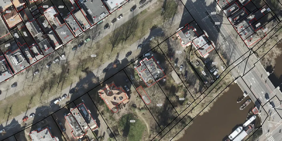 Heresingel 15 is gelegen op kadastraal perceel GNG00H2447. Deze kadastrale aanduiding is uniek en wordt gebruikt door het Kadaster om eigendomsrechten en andere zakelijke rechten vast te leggen. Het perceel maakt onderdeel uit van de kadastrale gemeente Groningen.