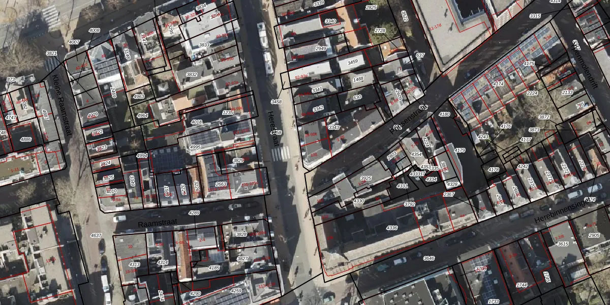 Herestraat 100 is gelegen op kadastraal perceel GNG00H3343. Deze kadastrale aanduiding is uniek en wordt gebruikt door het Kadaster om eigendomsrechten en andere zakelijke rechten vast te leggen. Het perceel maakt onderdeel uit van de kadastrale gemeente Groningen.