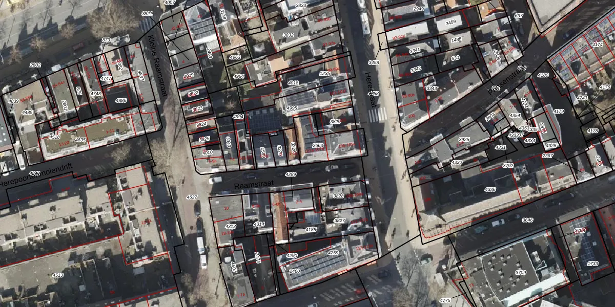 Herestraat 107-b is gelegen op kadastraal perceel GNG00I2663. Deze kadastrale aanduiding is uniek en wordt gebruikt door het Kadaster om eigendomsrechten en andere zakelijke rechten vast te leggen. Het perceel maakt onderdeel uit van de kadastrale gemeente Groningen.