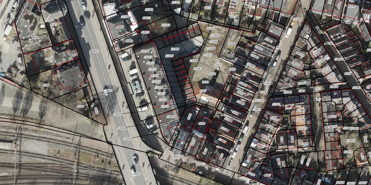 Het adres is gelegen op perceel 11017 in de sectie B en de kadastrale gemeente Groningen. De kadastrale aanduiding is aldus GNG00-B-11017. De gemiddelde perceelgrootte in Groningen is 770,7 m². Dit perceel is kleiner: de perceeloppervlakte bedraagt 16 m². De grootste perceeloppervlakte in de kadastrale gemeente is 31,8 ha. De kleinste oppervlakte bedraagt 0 m². Dit is het enige adres dat aanwezig is op het perceel. In de Basisregistratie Kadaster (BRK) werden de grenzen van het perceel geregistreerd op 23-07-2003.