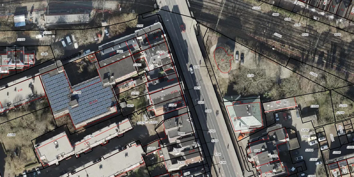 Het adres is gelegen op perceel 8825 in de sectie C en de kadastrale gemeente Groningen. De kadastrale aanduiding is aldus GNG00-C-8825. Het perceel is kleiner dan gemiddeld in Groningen. Het perceel is 254 m² groot, terwijl het gemiddelde ligt op 772,77 m². Het kleinste perceel in de kadastrale gemeente is 0 m² groot. De grootste perceeloppervlakte is 31,8 ha. Op het perceel zijn 4 adressen aanwezig. De laatste wijziging in het de Basisregistratie Kadaster (BRK) was op 01-08-2003.