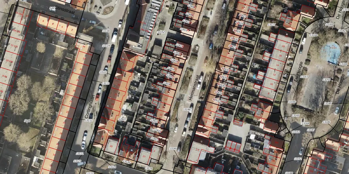 Het perceel waarop Hermanstraat 18 staat heeft een oppervlakte van 75 m². Dit is een klein perceel. De perceeloppervlakte wordt geregistreerd door het Kadaster. Gedetailleerde informatie over de maten van dit perceel kunt u vinden in het rapport Kadastrale kaart met maatvoering van Hermanstraat 18.