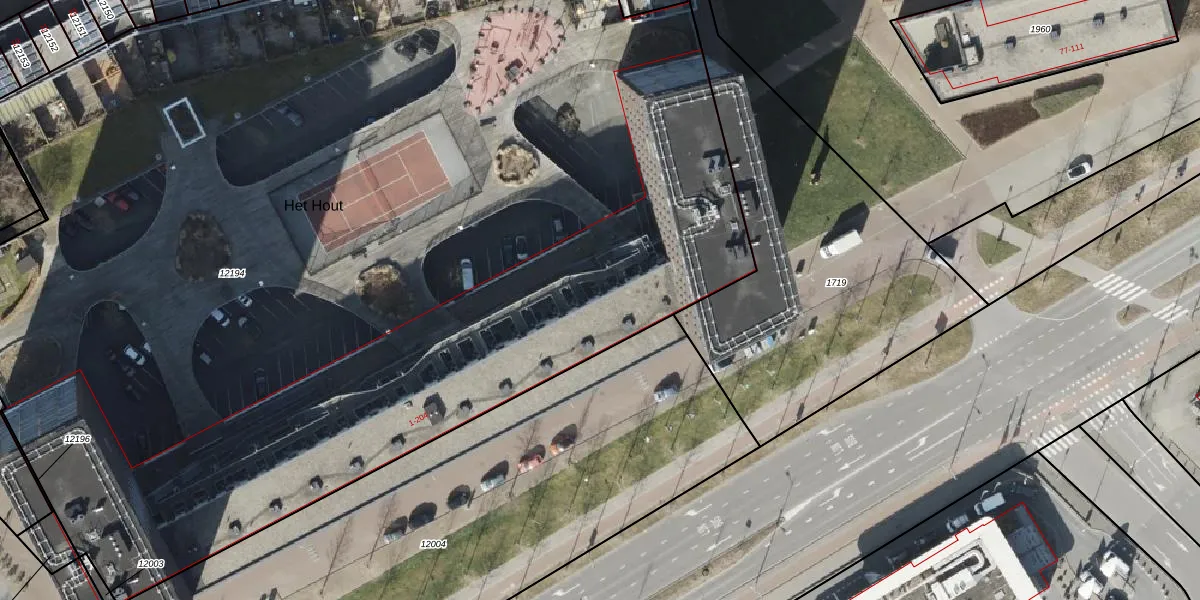 Het Hout 100 is gelegen op kadastraal perceel GNG00B12194. Deze kadastrale aanduiding is uniek en wordt gebruikt door het Kadaster om eigendomsrechten en andere zakelijke rechten vast te leggen. Het perceel maakt onderdeel uit van de kadastrale gemeente Groningen.