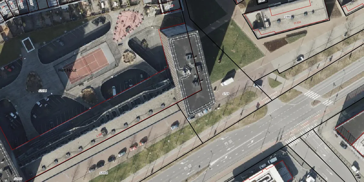 Het perceel waarop Het Hout 134 staat heeft een oppervlakte van 9616 m². Dit is een zeer groot perceel. De perceeloppervlakte wordt geregistreerd door het Kadaster. Gedetailleerde informatie over de maten van dit perceel kunt u vinden in het rapport Kadastrale kaart met maatvoering van Het Hout 134.