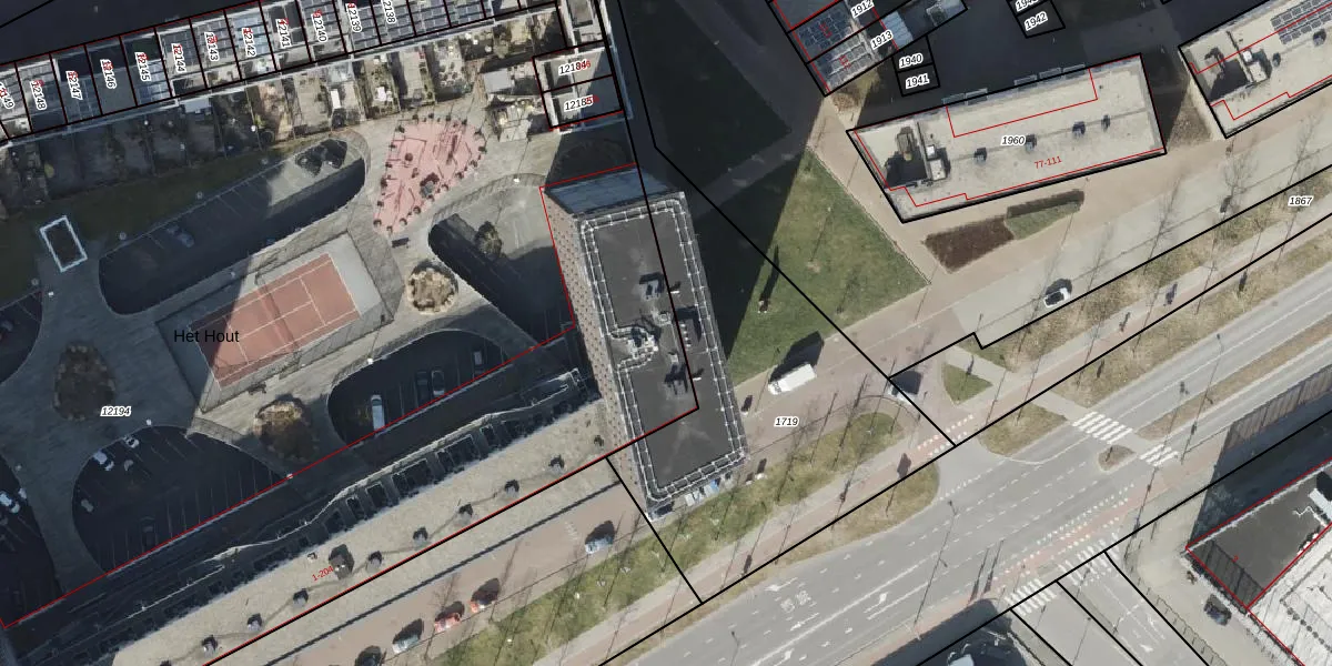 Het perceel waarop Het Hout 147 staat heeft een oppervlakte van 9616 m². Dit is een zeer groot perceel. De perceeloppervlakte wordt geregistreerd door het Kadaster. Gedetailleerde informatie over de maten van dit perceel kunt u vinden in het rapport Kadastrale kaart met maatvoering van Het Hout 147.