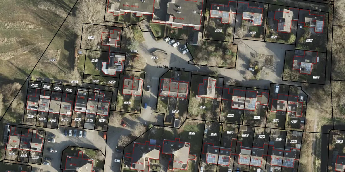 Het perceel waarop Hiddemaheerd 115 staat heeft een oppervlakte van 541 m². Dit is een groot perceel. De perceeloppervlakte wordt geregistreerd door het Kadaster. Gedetailleerde informatie over de maten van dit perceel kunt u vinden in het rapport Kadastrale kaart met maatvoering van Hiddemaheerd 115.