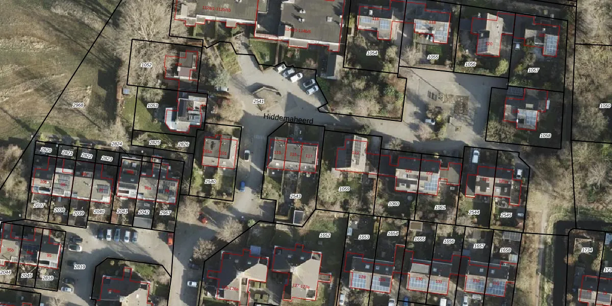 Het perceel waarop Hiddemaheerd 117 staat heeft een oppervlakte van 541 m². Dit is een groot perceel. De perceeloppervlakte wordt geregistreerd door het Kadaster. Gedetailleerde informatie over de maten van dit perceel kunt u vinden in het rapport Kadastrale kaart met maatvoering van Hiddemaheerd 117.