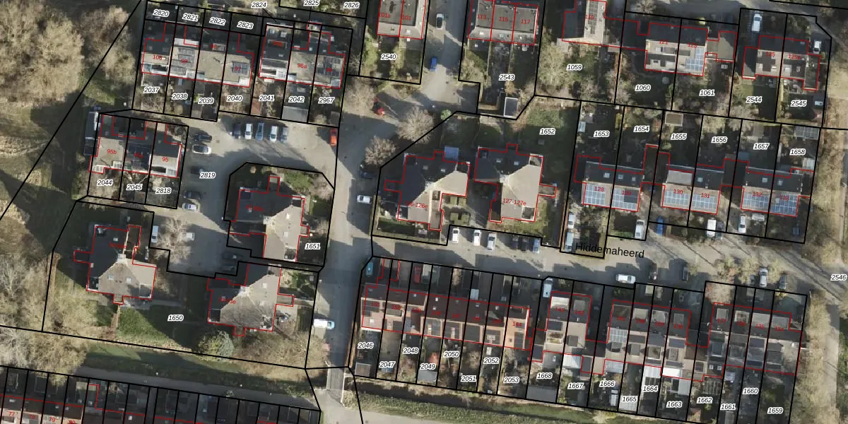 Het perceel waarop Hiddemaheerd 126-e staat heeft een oppervlakte van 1247 m². Dit is een zeer groot perceel. De perceeloppervlakte wordt geregistreerd door het Kadaster. Gedetailleerde informatie over de maten van dit perceel kunt u vinden in het rapport Kadastrale kaart met maatvoering van Hiddemaheerd 126-e.