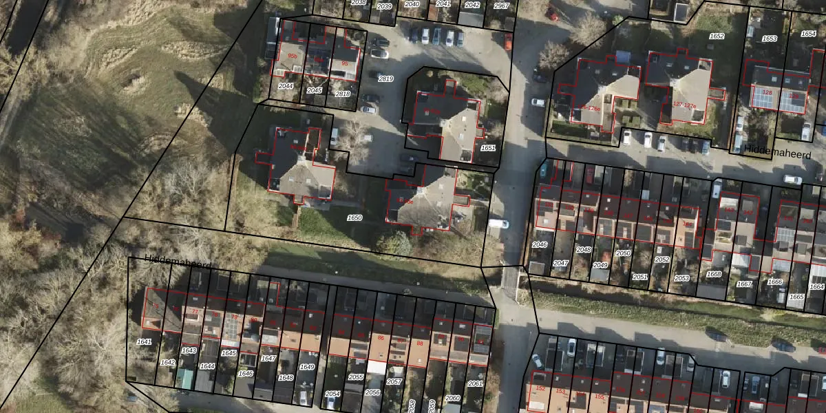 Het perceel waarop Hiddemaheerd 93-d staat heeft een oppervlakte van 1538 m². Dit is een zeer groot perceel. De perceeloppervlakte wordt geregistreerd door het Kadaster. Gedetailleerde informatie over de maten van dit perceel kunt u vinden in het rapport Kadastrale kaart met maatvoering van Hiddemaheerd 93-d.