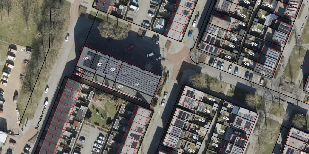 Hippocrateslaan 42 is gelegen op kadastraal perceel HMN02O459. Deze kadastrale aanduiding is uniek en wordt gebruikt door het Kadaster om eigendomsrechten en andere zakelijke rechten vast te leggen. Het perceel maakt onderdeel uit van de kadastrale gemeente Helpman.