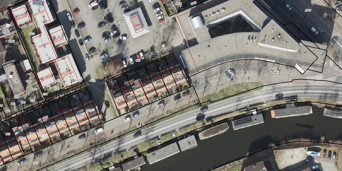 Hoendiep 19 is gelegen op kadastraal perceel GNG00L692. Deze kadastrale aanduiding is uniek en wordt gebruikt door het Kadaster om eigendomsrechten en andere zakelijke rechten vast te leggen. Het perceel maakt onderdeel uit van de kadastrale gemeente Groningen.