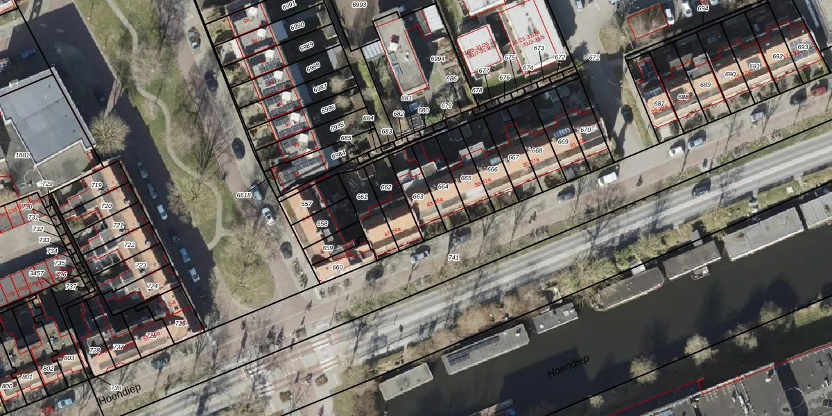 Hoendiep 43-a is gelegen op kadastraal perceel GNG00L663. Deze kadastrale aanduiding is uniek en wordt gebruikt door het Kadaster om eigendomsrechten en andere zakelijke rechten vast te leggen. Het perceel maakt onderdeel uit van de kadastrale gemeente Groningen.
