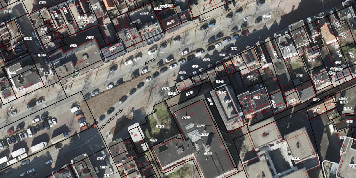 Het perceel waarop Hoendiepskade 22 staat heeft een oppervlakte van 53 m². Dit is een klein perceel. De perceeloppervlakte wordt geregistreerd door het Kadaster. Gedetailleerde informatie over de maten van dit perceel kunt u vinden in het rapport Kadastrale kaart met maatvoering van Hoendiepskade 22.