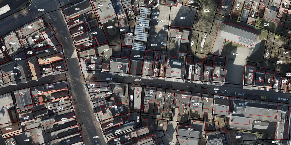Hofstraat 10 is gelegen op kadastraal perceel GNG00G910. Deze kadastrale aanduiding is uniek en wordt gebruikt door het Kadaster om eigendomsrechten en andere zakelijke rechten vast te leggen. Het perceel maakt onderdeel uit van de kadastrale gemeente Groningen.