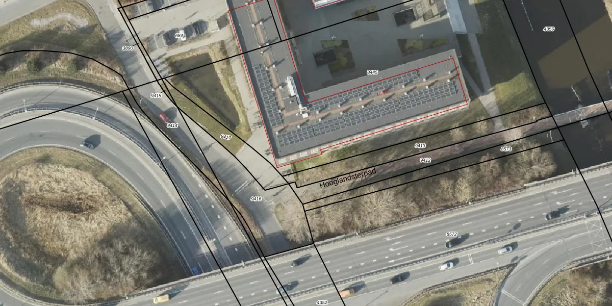 Het adres is gelegen op perceel 8445 in de sectie L en de kadastrale gemeente Groningen. De kadastrale aanduiding is aldus GNG00-L-8445. Het perceel is met 4325 m² relatief groot. Het gemiddelde ligt in de kadastrale gemeente Groningen op 771,43 m². De grootste perceeloppervlakte in de kadastrale gemeente is 31,8 ha. De kleinste oppervlakte bedraagt 0 m². Op het perceel zijn 201 adressen aanwezig. In de Basisregistratie Kadaster (BRK) werden de grenzen van het perceel geregistreerd op 01-04-2011.