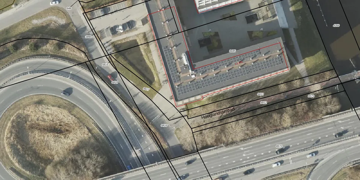 Het adres is gelegen op perceel 8445 in de sectie L en de kadastrale gemeente Groningen. De kadastrale aanduiding is aldus GNG00-L-8445. Het perceel is met 4325 m² relatief groot. Het gemiddelde ligt in de kadastrale gemeente Groningen op 771,43 m². Het grootste perceel in de kadastrale gemeente is 31,8 ha. Het kleinste perceel heeft een oppervlakte van 0 m². Op het perceel zijn 201 adressen aanwezig. De huidige grenzen van het perceel zijn digitaal in de Basisregistratie Kadaster (BRK) geregistreerd op 01-04-2011.