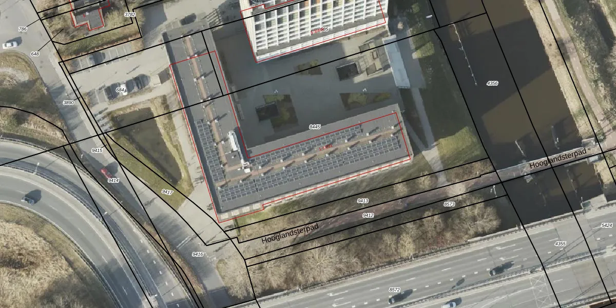 Het adres is gelegen op perceel 8445 in de sectie L en de kadastrale gemeente Groningen. De kadastrale aanduiding is aldus GNG00-L-8445. Het perceel is met 4325 m² relatief groot. Het gemiddelde ligt in de kadastrale gemeente Groningen op 771,43 m². Het grootste perceel in de kadastrale gemeente is 31,8 ha. Het kleinste perceel heeft een oppervlakte van 0 m². Op het perceel zijn 201 adressen aanwezig. De huidige grenzen van het perceel zijn digitaal in de Basisregistratie Kadaster (BRK) geregistreerd op 01-04-2011.