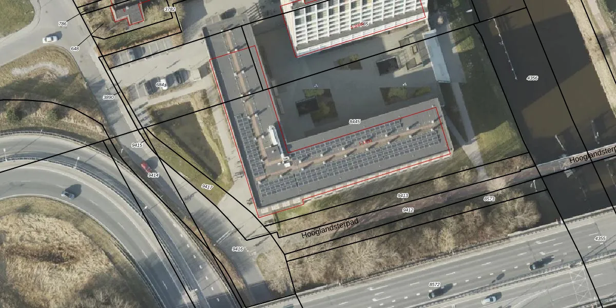 Het adres is gelegen op perceel 8445 in de sectie L en de kadastrale gemeente Groningen. De kadastrale aanduiding is aldus GNG00-L-8445. Het perceel is met 4325 m² relatief groot. Het gemiddelde ligt in de kadastrale gemeente Groningen op 771,43 m². Het grootste perceel in de kadastrale gemeente is 31,8 ha. Het kleinste perceel heeft een oppervlakte van 0 m². Er zijn 201 adressen aanwezig op het perceel. De huidige grenzen van het perceel zijn digitaal in de Basisregistratie Kadaster (BRK) geregistreerd op 01-04-2011.
