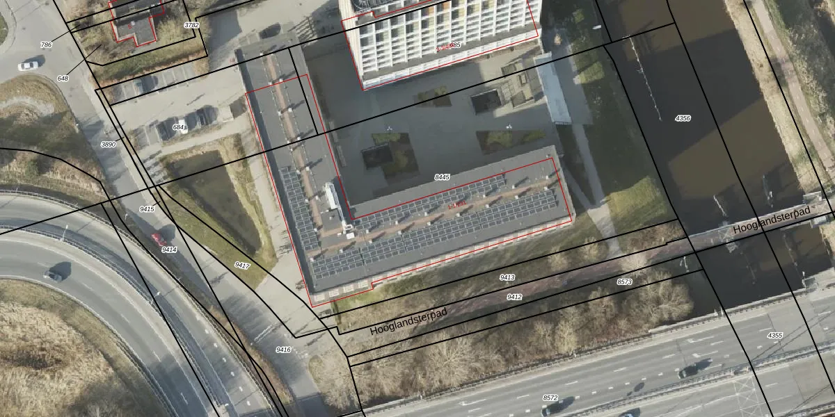 Het adres is gelegen op perceel 8445 in de sectie L en de kadastrale gemeente Groningen. De kadastrale aanduiding is aldus GNG00-L-8445. Het perceel is met 4325 m² relatief groot. Het gemiddelde ligt in de kadastrale gemeente Groningen op 771,43 m². Het grootste perceel in de kadastrale gemeente is 31,8 ha. Het kleinste perceel heeft een oppervlakte van 0 m². Er zijn 201 adressen aanwezig op het perceel. De huidige grenzen van het perceel zijn digitaal in de Basisregistratie Kadaster (BRK) geregistreerd op 01-04-2011.