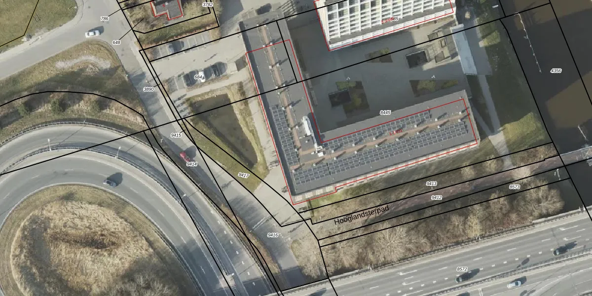 Het adres is gelegen op perceel 8445 in de sectie L en de kadastrale gemeente Groningen. De kadastrale aanduiding is aldus GNG00-L-8445. Het perceel is met 4325 m² relatief groot. Het gemiddelde ligt in de kadastrale gemeente Groningen op 771,43 m². Het kleinste perceel in de kadastrale gemeente is 0 m² groot. De grootste perceeloppervlakte is 31,8 ha. Op het perceel zijn 201 adressen aanwezig. In de Basisregistratie Kadaster (BRK) werden de grenzen van het perceel geregistreerd op 01-04-2011.
