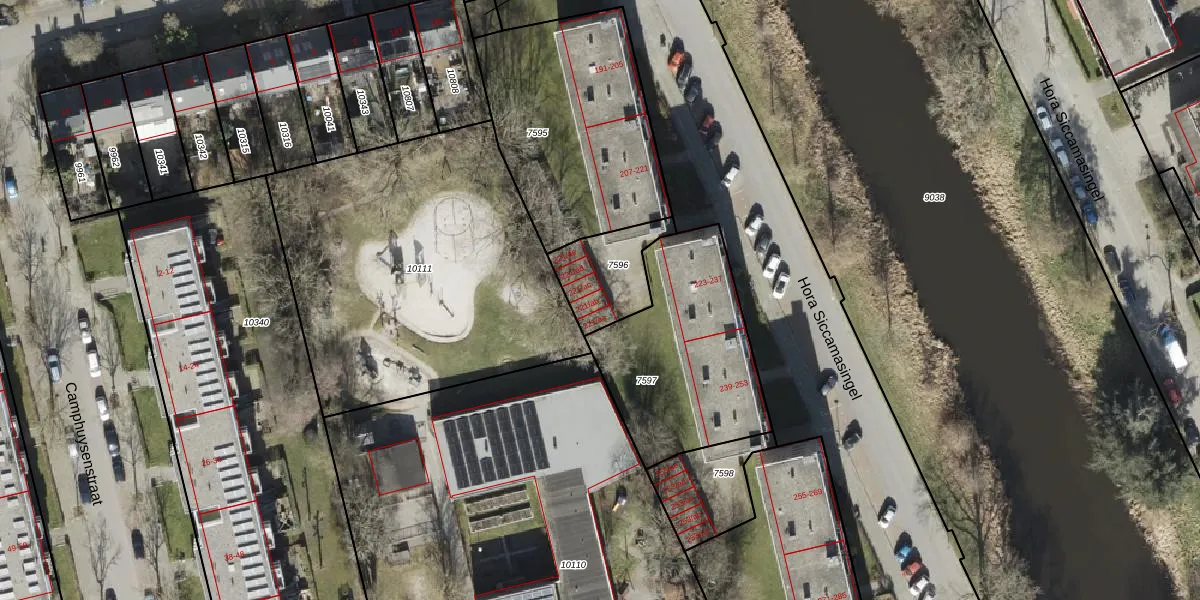 Hora Siccamasingel 221-ab is gelegen op kadastraal perceel HMN02M7596. Deze kadastrale aanduiding is uniek en wordt gebruikt door het Kadaster om eigendomsrechten en andere zakelijke rechten vast te leggen. Het perceel maakt onderdeel uit van de kadastrale gemeente Helpman.