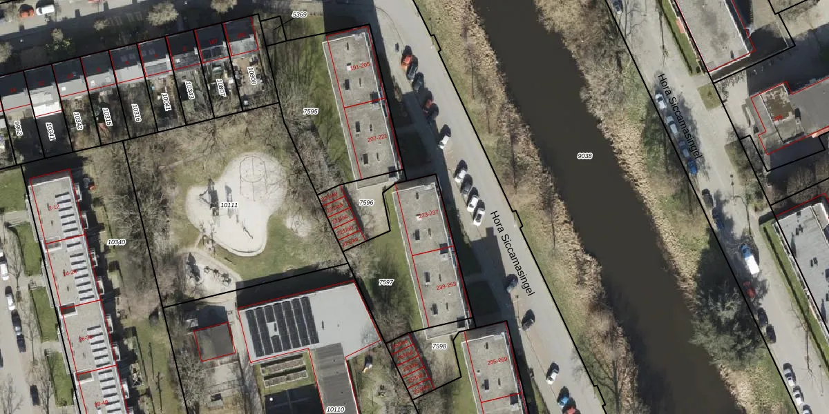 Hora Siccamasingel 233 is gelegen op kadastraal perceel HMN02M7597. Deze kadastrale aanduiding is uniek en wordt gebruikt door het Kadaster om eigendomsrechten en andere zakelijke rechten vast te leggen. Het perceel maakt onderdeel uit van de kadastrale gemeente Helpman.