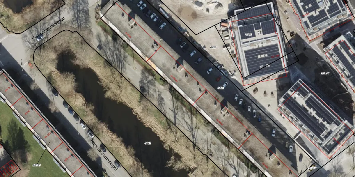 Het perceel waarop Hora Siccamasingel 28 staat heeft een oppervlakte van 3580 m². Dit is een zeer groot perceel. De perceeloppervlakte wordt geregistreerd door het Kadaster. Gedetailleerde informatie over de maten van dit perceel kunt u vinden in het rapport Kadastrale kaart met maatvoering van Hora Siccamasingel 28.