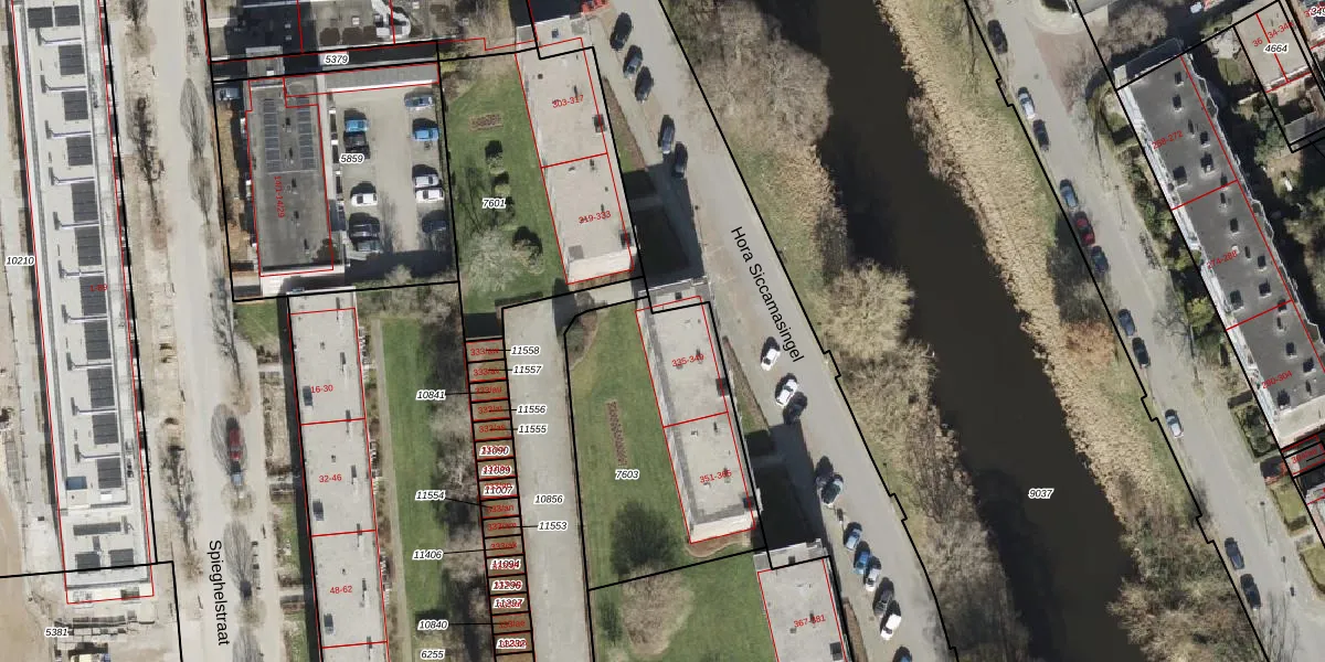 Hora Siccamasingel 343 is gelegen op kadastraal perceel HMN02M7603. Deze kadastrale aanduiding is uniek en wordt gebruikt door het Kadaster om eigendomsrechten en andere zakelijke rechten vast te leggen. Het perceel maakt onderdeel uit van de kadastrale gemeente Helpman.