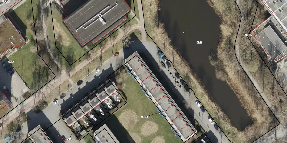 Hora Siccamasingel 5 is gelegen op kadastraal perceel HMN02M10588. Deze kadastrale aanduiding is uniek en wordt gebruikt door het Kadaster om eigendomsrechten en andere zakelijke rechten vast te leggen. Het perceel maakt onderdeel uit van de kadastrale gemeente Helpman.