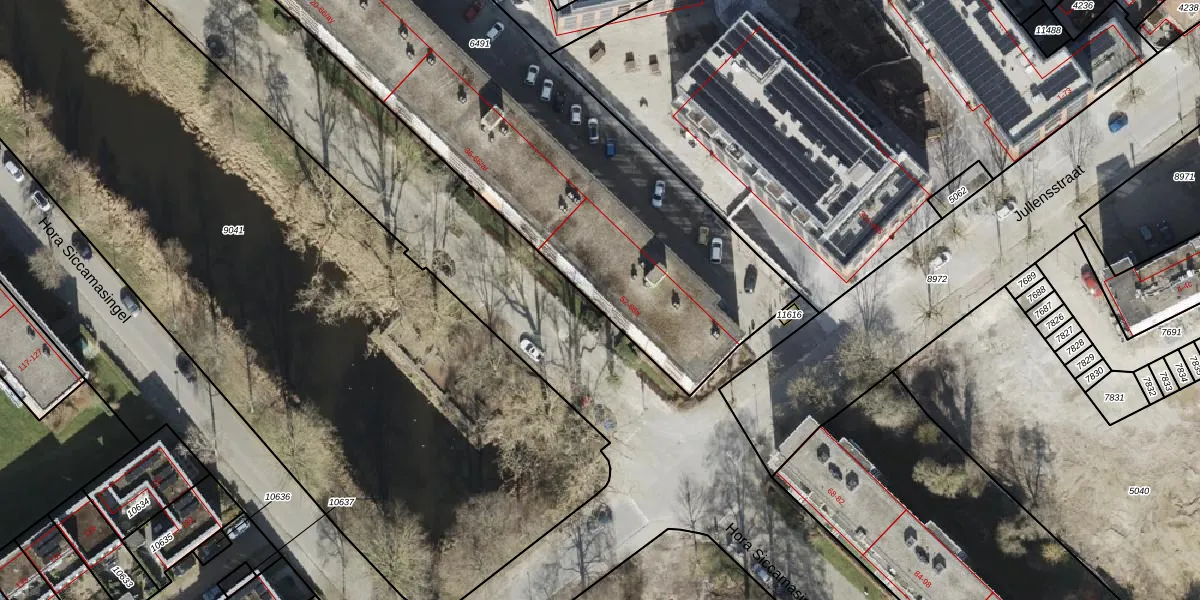 Het perceel waarop Hora Siccamasingel 52 staat heeft een oppervlakte van 3580 m². Dit is een zeer groot perceel. De perceeloppervlakte wordt geregistreerd door het Kadaster. Gedetailleerde informatie over de maten van dit perceel kunt u vinden in het rapport Kadastrale kaart met maatvoering van Hora Siccamasingel 52.