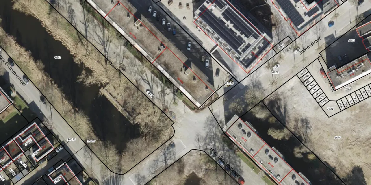 Het perceel waarop Hora Siccamasingel 62 staat heeft een oppervlakte van 3580 m². Dit is een zeer groot perceel. De perceeloppervlakte wordt geregistreerd door het Kadaster. Gedetailleerde informatie over de maten van dit perceel kunt u vinden in het rapport Kadastrale kaart met maatvoering van Hora Siccamasingel 62.