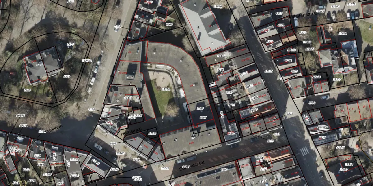 Hornstraat 16 is gelegen op kadastraal perceel GNG00B12258. Deze kadastrale aanduiding is uniek en wordt gebruikt door het Kadaster om eigendomsrechten en andere zakelijke rechten vast te leggen. Het perceel maakt onderdeel uit van de kadastrale gemeente Groningen.