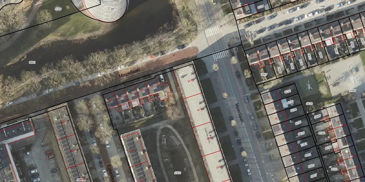 Het perceel waarop het adres ligt is GNG00-L-1502. De afkorting 'GNG00' staat voor kadastrale gemeente Groningen. De oppervlakte van het perceel is 5238 m². Dat is groter dan gemiddeld in Groningen, waar de gemiddelde perceeloppervlakte op 770,65 m² ligt. Het grootste perceel in de kadastrale gemeente is 31,8 ha. Het kleinste perceel heeft een oppervlakte van 0 m². Er zijn 86 adressen aanwezig op het perceel. In de Basisregistratie Kadaster (BRK) werden de grenzen van het perceel geregistreerd op 14-08-2003.