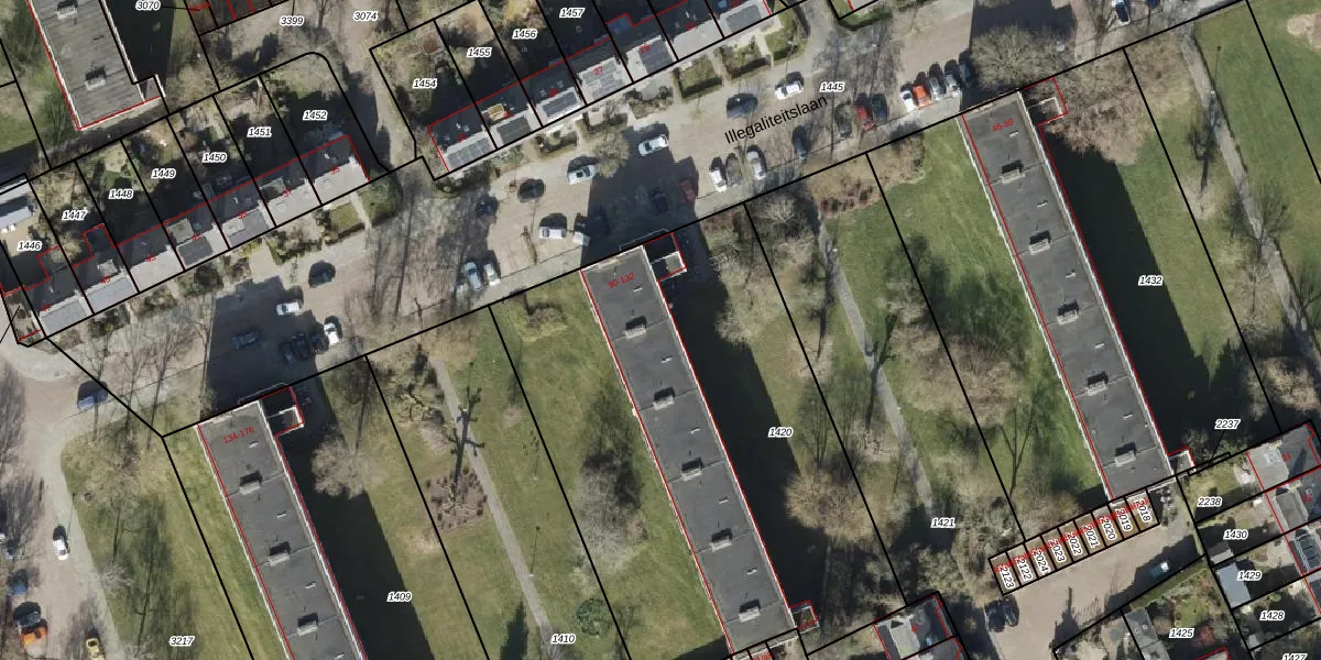 Illegaliteitslaan 114 is gelegen op kadastraal perceel GNG00R1420. Deze kadastrale aanduiding is uniek en wordt gebruikt door het Kadaster om eigendomsrechten en andere zakelijke rechten vast te leggen. Het perceel maakt onderdeel uit van de kadastrale gemeente Groningen.