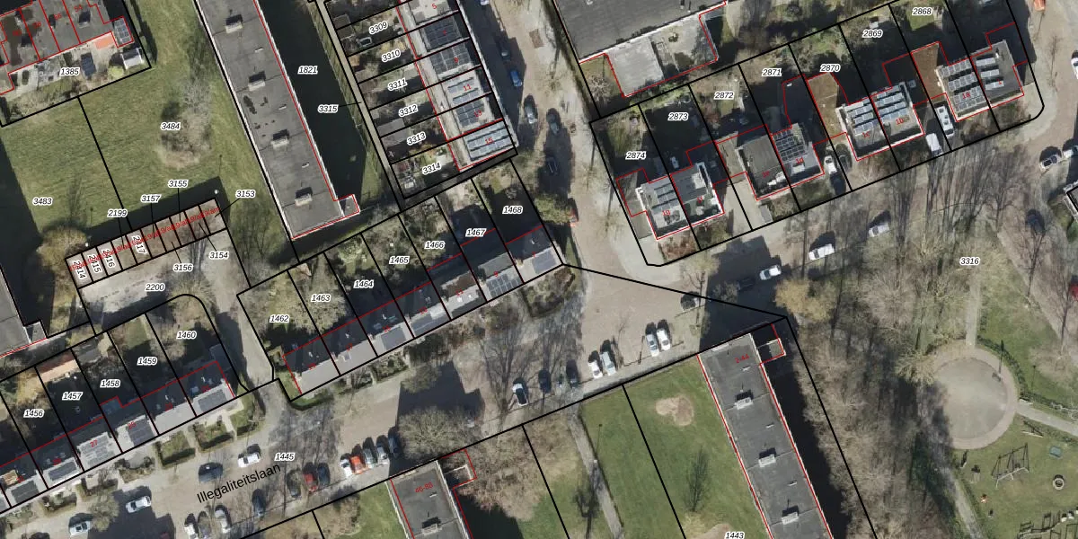 Het perceel waarop Illegaliteitslaan 7 staat heeft een oppervlakte van 176 m². Dit is een middelgroot perceel. De perceeloppervlakte wordt geregistreerd door het Kadaster. Gedetailleerde informatie over de maten van dit perceel kunt u vinden in het rapport Kadastrale kaart met maatvoering van Illegaliteitslaan 7.