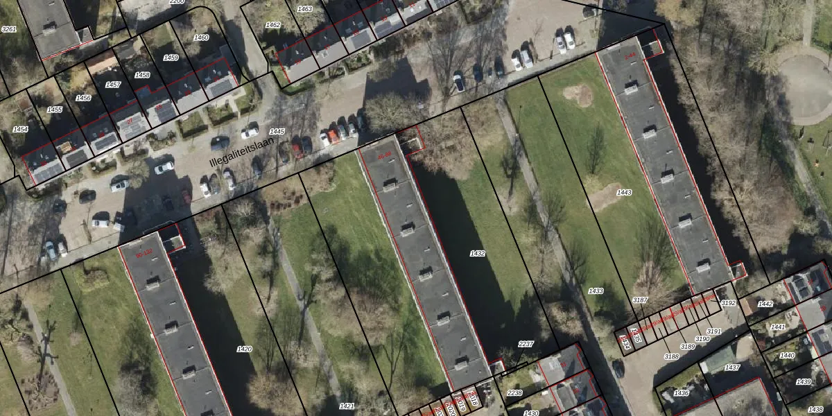 Illegaliteitslaan 82 is gelegen op kadastraal perceel GNG00R1432. Deze kadastrale aanduiding is uniek en wordt gebruikt door het Kadaster om eigendomsrechten en andere zakelijke rechten vast te leggen. Het perceel maakt onderdeel uit van de kadastrale gemeente Groningen.