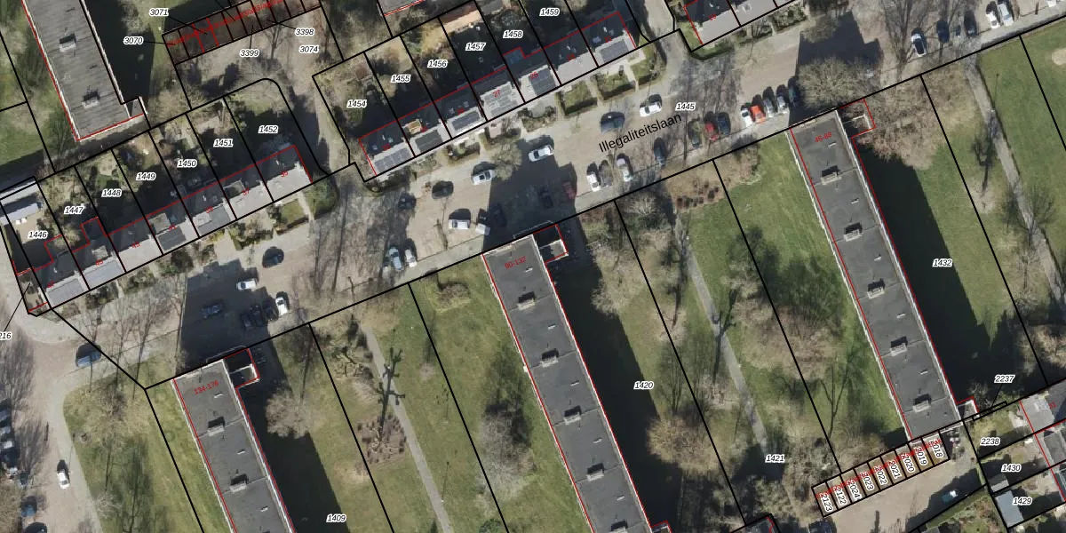 Illegaliteitslaan 96 is gelegen op kadastraal perceel GNG00R1420. Deze kadastrale aanduiding is uniek en wordt gebruikt door het Kadaster om eigendomsrechten en andere zakelijke rechten vast te leggen. Het perceel maakt onderdeel uit van de kadastrale gemeente Groningen.