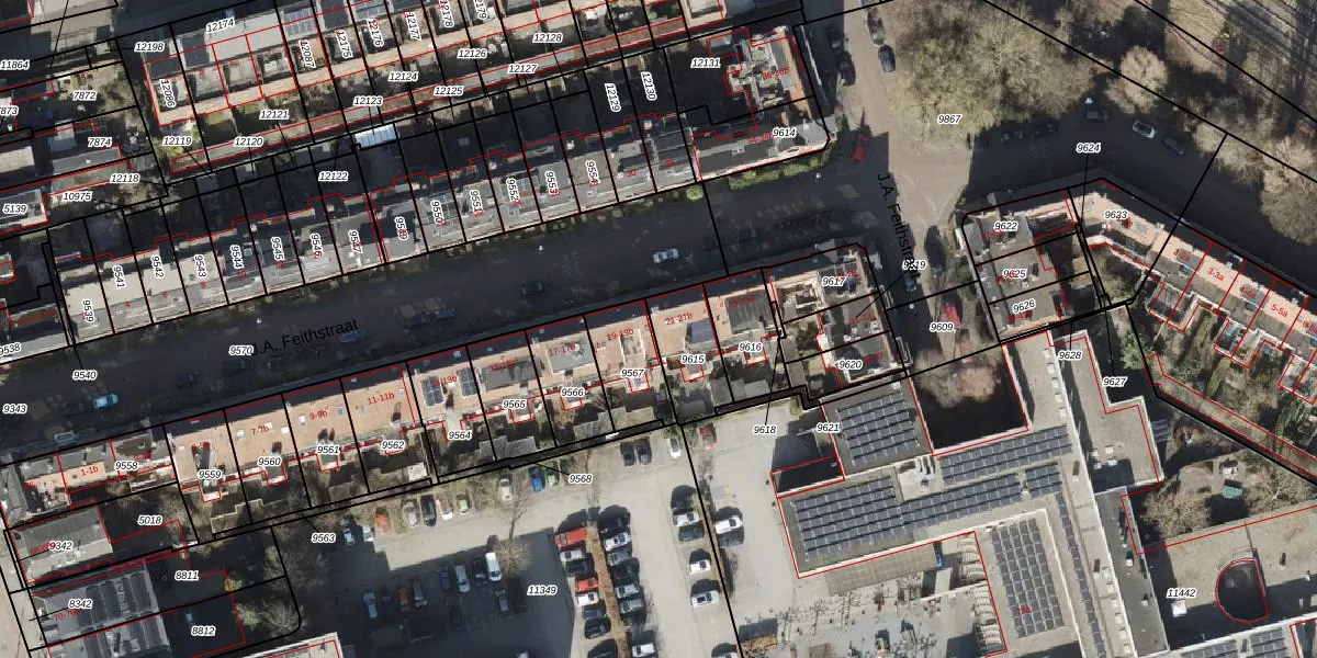 J.A. Feithstraat 21-a is gelegen op kadastraal perceel GNG00B9615. Deze kadastrale aanduiding is uniek en wordt gebruikt door het Kadaster om eigendomsrechten en andere zakelijke rechten vast te leggen. Het perceel maakt onderdeel uit van de kadastrale gemeente Groningen.
