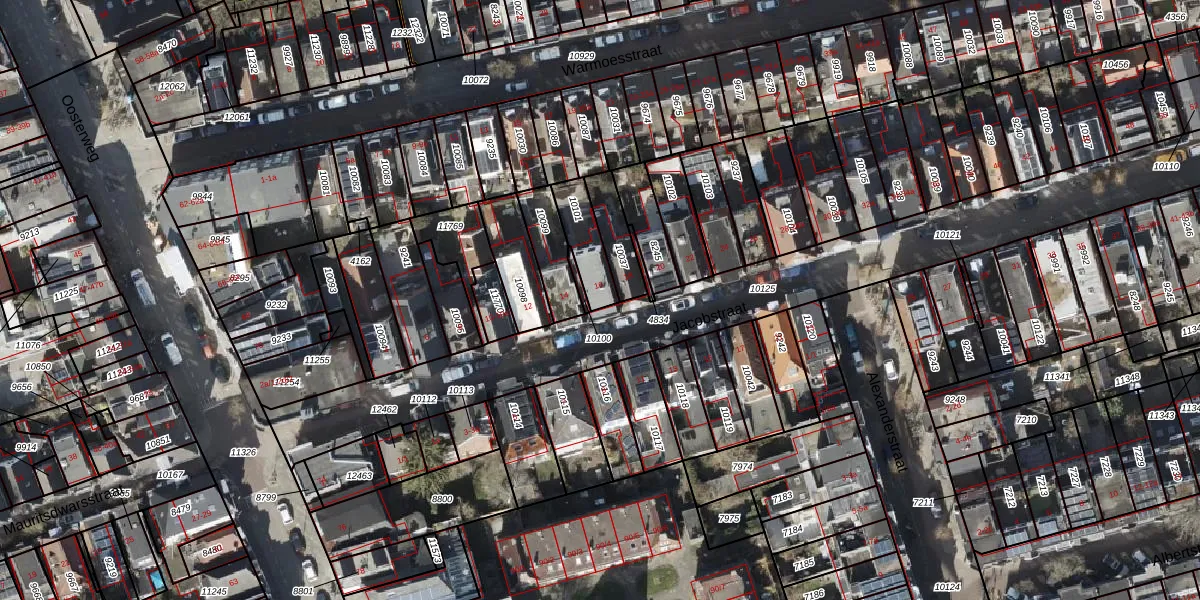 Het perceel waarop Jacobstraat 16 staat heeft een oppervlakte van 121 m². Dit is een middelgroot perceel. De perceeloppervlakte wordt geregistreerd door het Kadaster. Gedetailleerde informatie over de maten van dit perceel kunt u vinden in het rapport Kadastrale kaart met maatvoering van Jacobstraat 16.