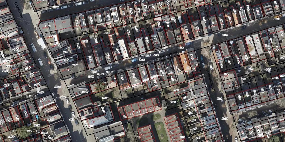 Het perceel waarop Jacobstraat 9 staat heeft een oppervlakte van 101 m². Dit is een middelgroot perceel. De perceeloppervlakte wordt geregistreerd door het Kadaster. Gedetailleerde informatie over de maten van dit perceel kunt u vinden in het rapport Kadastrale kaart met maatvoering van Jacobstraat 9.